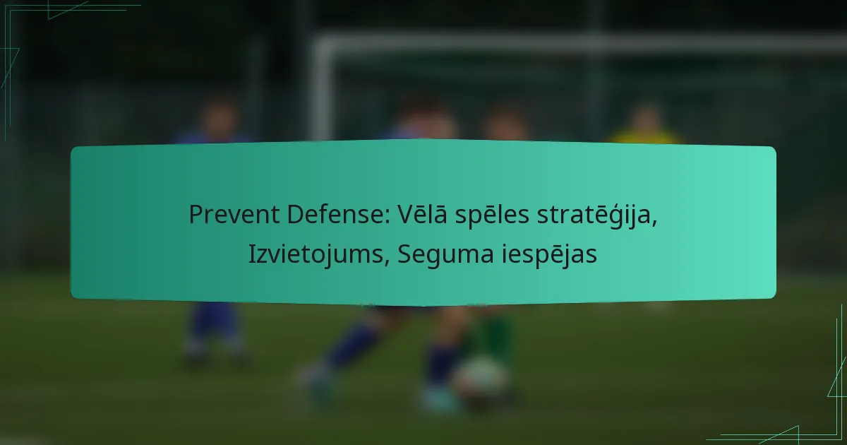 Prevent defense ir spēles beigās stratēģija, kas paredzēta, lai minimizētu lielās spēles, turpinot aizsargus dziļāk segšanā. Lai gan tā var efektīvi pārvaldīt laiku un ierobežot punktu gūšanas iespējas, tai ir arī riski, kas var novest pie spēles uzvarēšanas uzbrukumiem pretiniekiem.